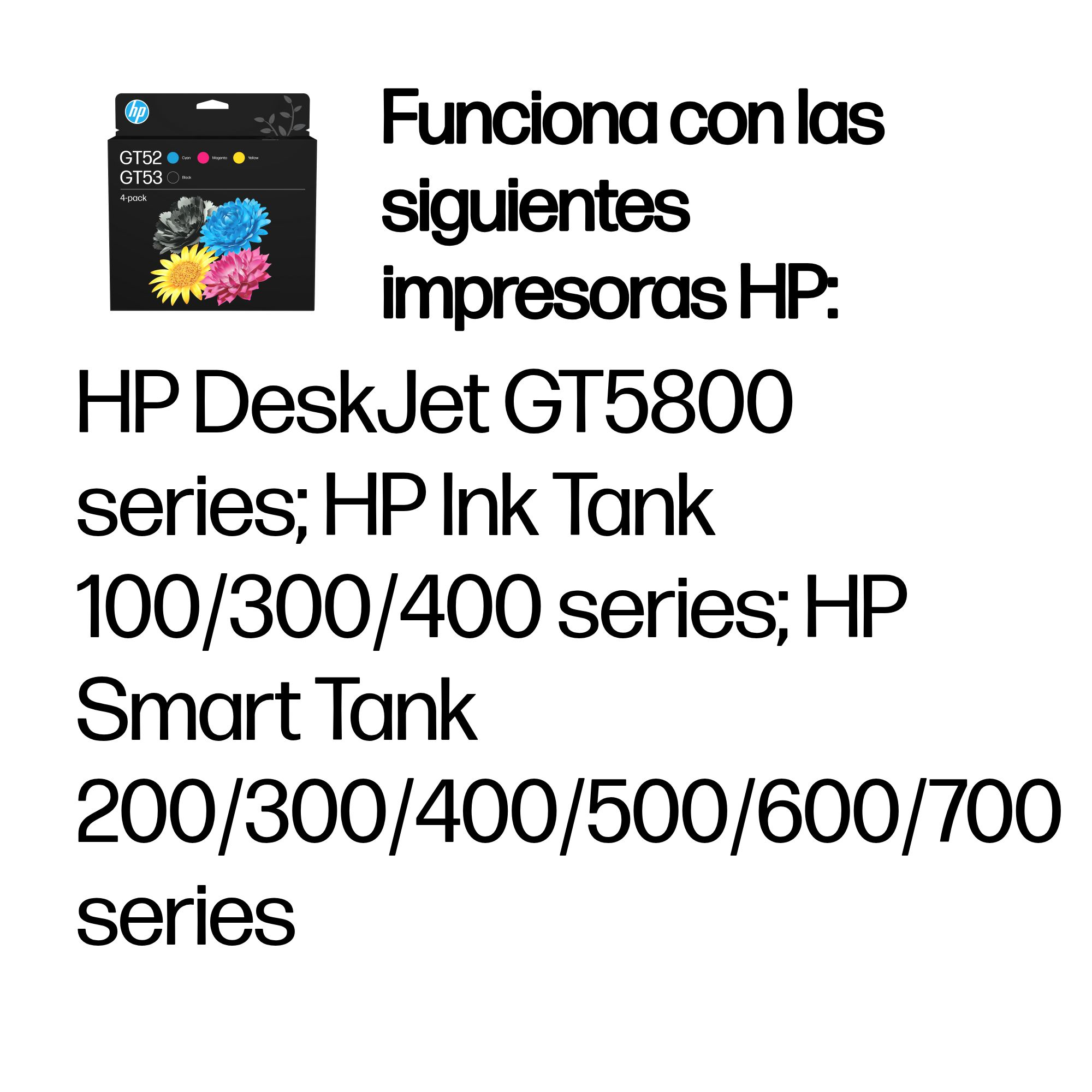 | Compatibilidad | HP DESKJET GT 5800 SERIES, HP INK TANK 100/300/400, HP SMART TANK 200/500/600/700 SERIES |